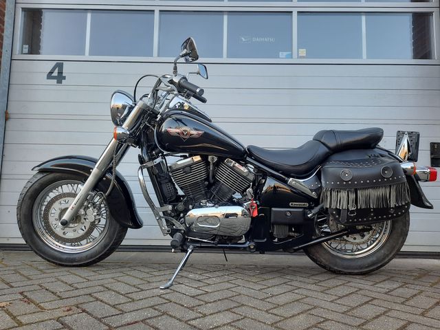 De Kawasaki VN 800 Classic uit 2005 is een stijlvolle en robuuste cruiser met een 805cc V-twin motor, die garant staat voor soepele prestaties en een heerlijk koppel. Het klassieke design met brede spatborden, veel chroom en een comfortabele zitpositie maakt deze motor ideaal voor ontspannen ritten.