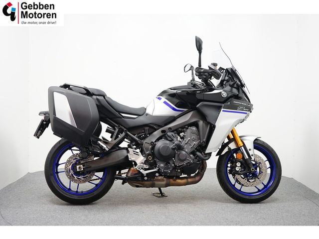 Een zeer complete en mooie Yamaha Tracer 9 GT + ABS met Handkappen, Kofferset, Middenbok, Cruise Control, Elektrisch verstelbaar windscherm, Handvatverwarming, Navigatie via Bluetooth, Key-less Ride, Instelbare vering, Comfort seat en Y-AMT automatische transmissie.